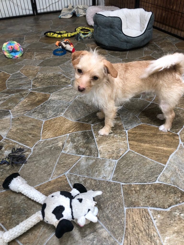 Taffy’s pups have all found their homes. Now it’s time for Taffy. She’s 11 pounds of fun and joy. Walks great on leash, enjoys playing with toys and other dogs. She’s a gem.