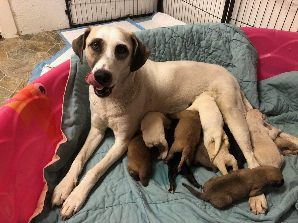 Oh, how does this keep happening? I am in love. In love with this new mama – Lily Rose. In less than 24 hours, she’s opened her heart and trusts us to handle her puppies, to easily move around her, to call for us when she needs to go outside.
